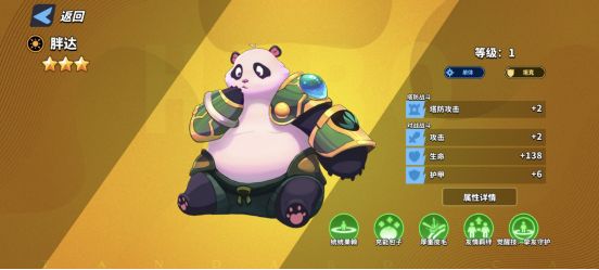 👉描述:对周围内敌人造成600%伤害,同时展开领域,使周围队友在4秒内恢复11次生命,每次恢复胖达攻击*2%的生命。
