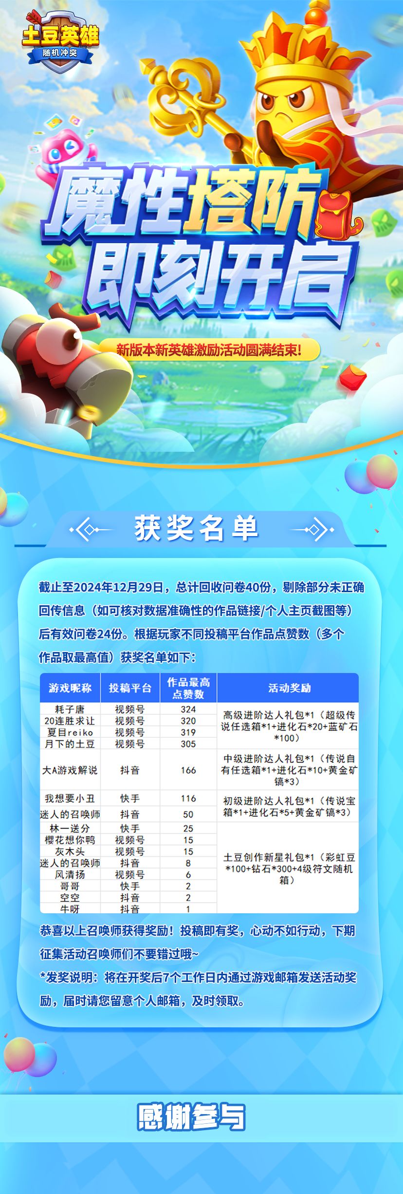 【获奖名单】新版本新英雄激励活动圆满结束!