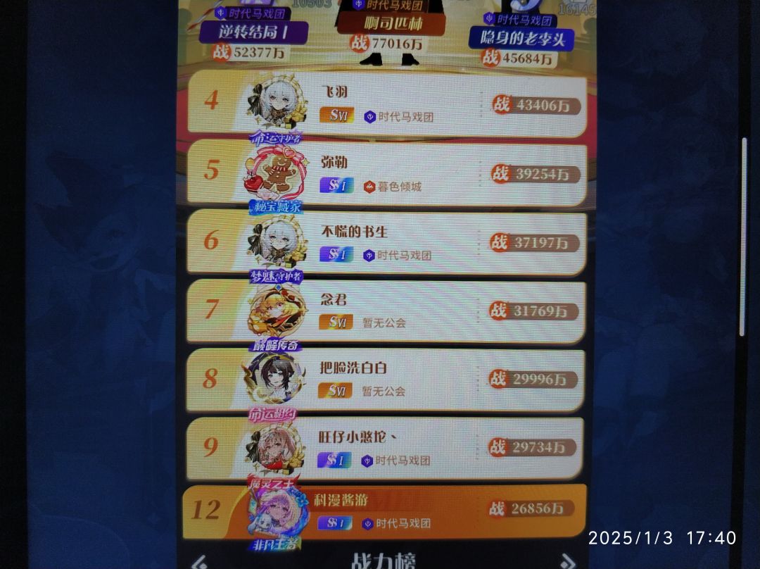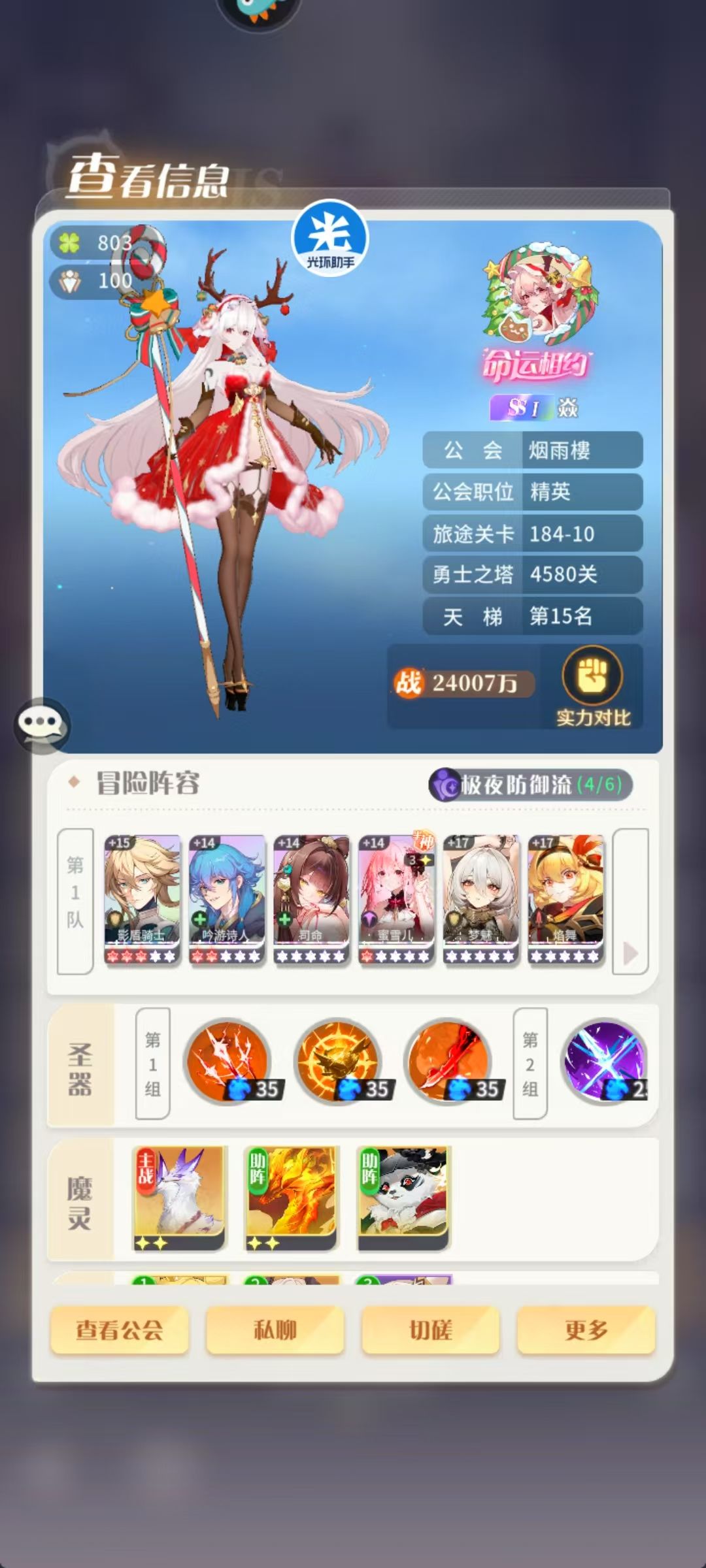 本人账号情况介绍完毕,除了五星弥撒以外都是平民易得的装备。群友2.4亿战力一千氪度,弥撒换诗人也是能过得。