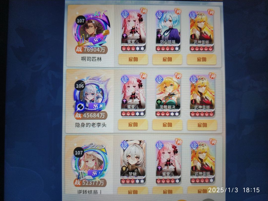 本人双子区非常卷,但是我没使用雇佣角色,梦寐没我强,前三都是蕾娜,根本用不上。