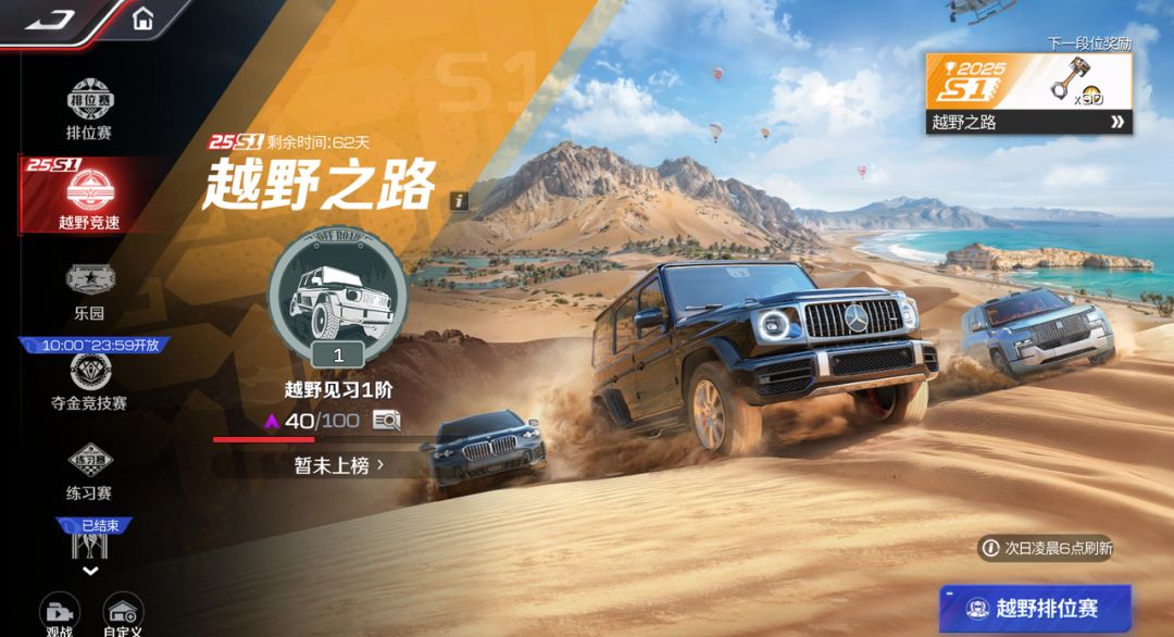 25S1赛季已经启程,每日登录参与签到活动即可获得三台全新越野车辆,还有机会将车辆升至满阶!