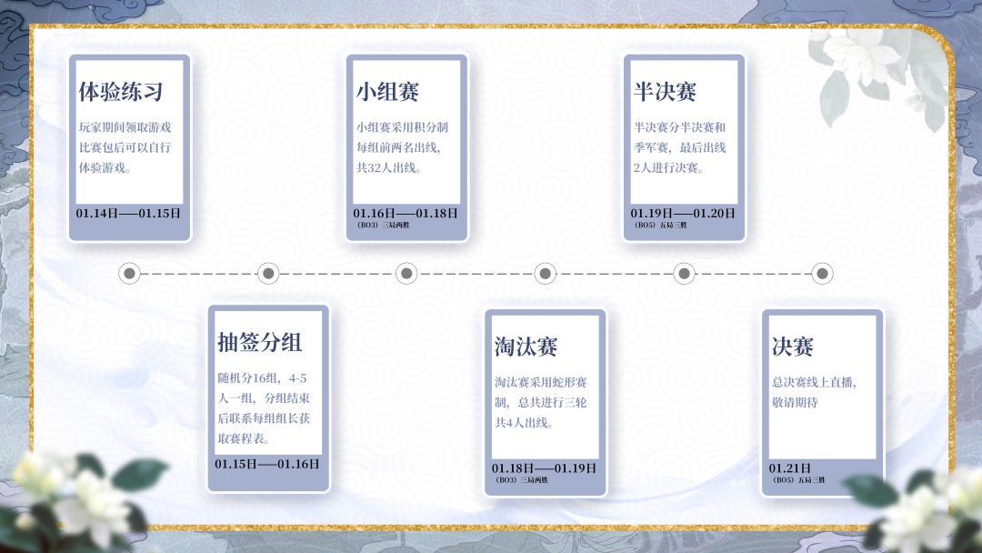 - 1月15日起,我们将逐日开启小组赛、淘汰赛、四强决赛。
