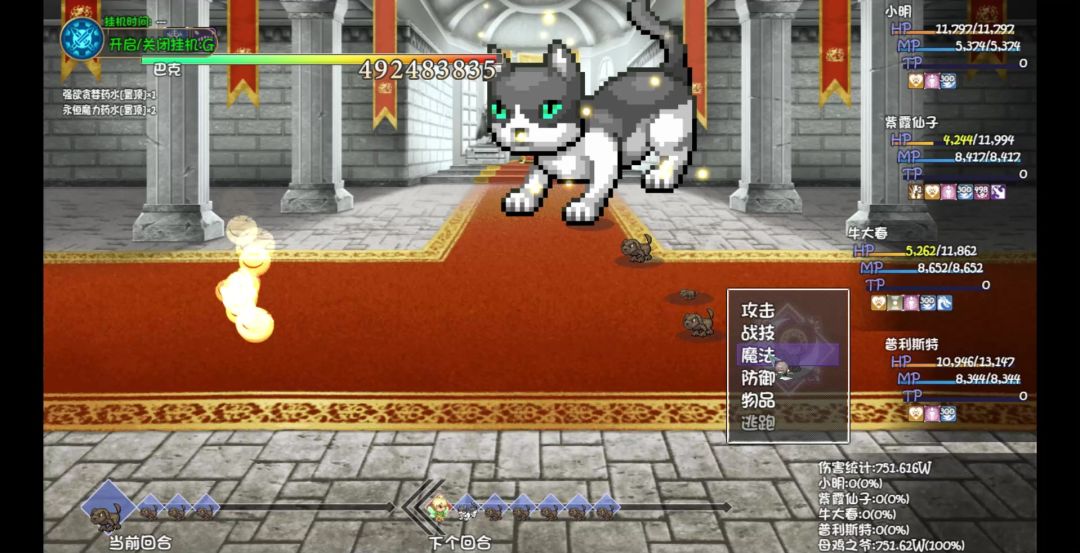 最后还是小白龙转纯奶了。两个奶130抗性打神魔该被秒还是被秒,但是打不变异都有概率打过,就是要赌boss双动少一点。boss要双动了小白龙给大春上龙涎(死亡复活,大春连击高起来可以一次复活三个人),普利斯特放守护天使(全体抵挡一次伤害)。打的挺折磨的Ծ‸Ծ