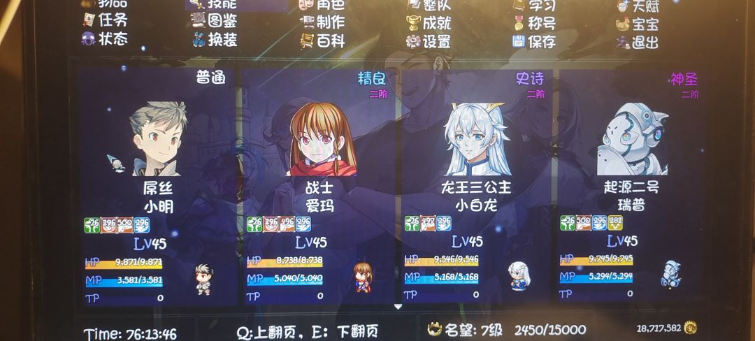 最后阵容搭配是,小明,汉娜,小白龙,瑞普。汉娜可攻可奶,增加容错,减少重练人物风险。其他角色技能也看了看,感觉爱玛(优秀),肖恩(精良),刘备(精良)技能比较有意思,未来可期?等解锁备战了就放进去。