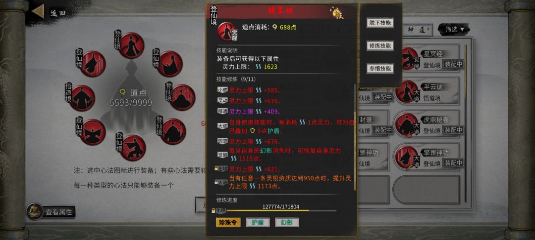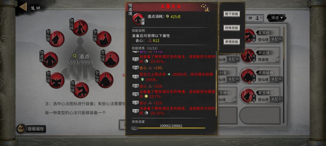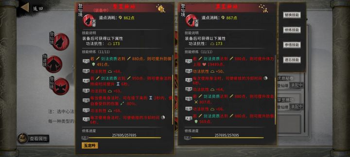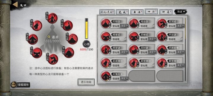 另外修炼时间,每个月一定要去琼芳仙祠换道心果,用红色功法,不然会不够道心无法装技能。