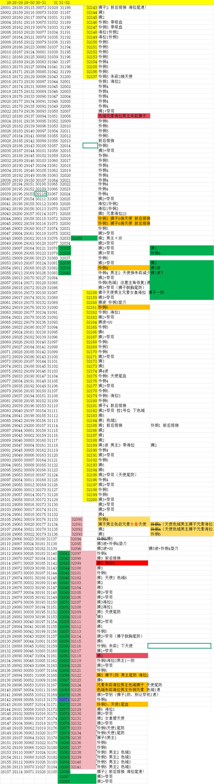 先介绍下二转的轮回图,从28-1开始每157章图一个轮回,到32-200结束,其中32-34开始到32-200顺序有错乱,33图开始难度陡然下降,但34-100后难度提升。