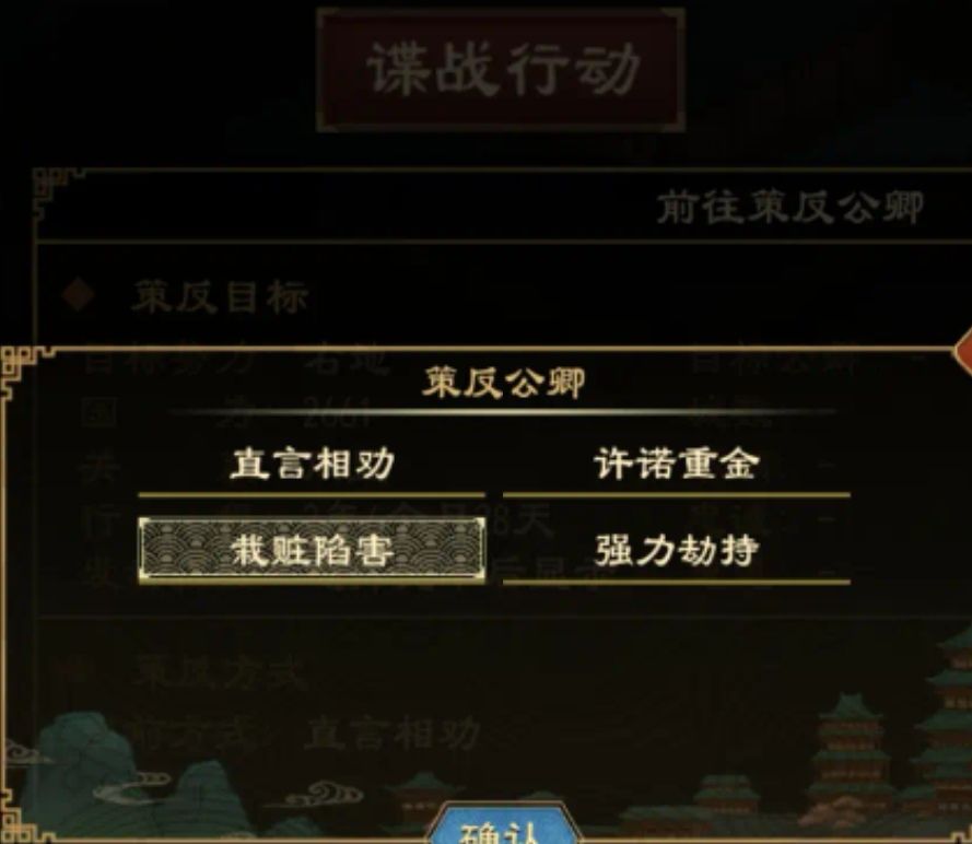 都城里,进入禁府,再进入谍战行动,即可策反他国公卿。