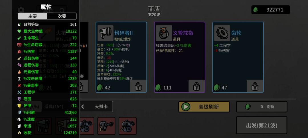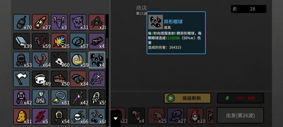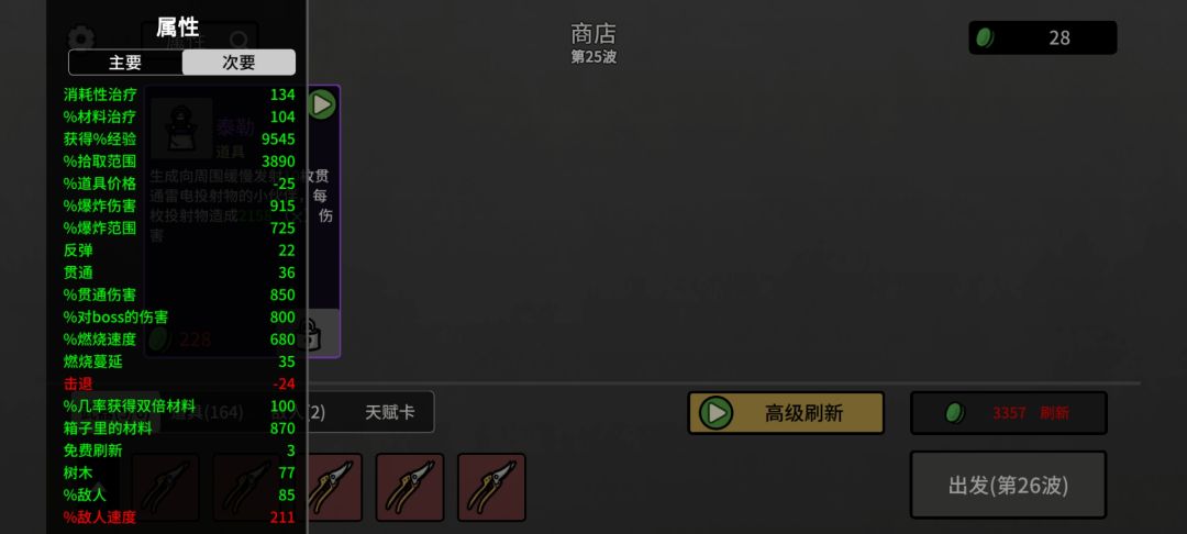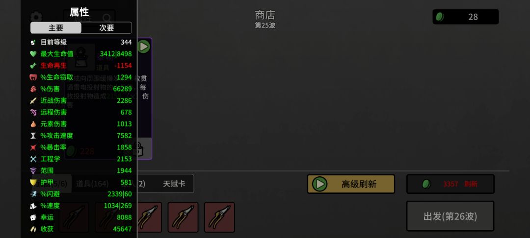 9.接下来的每一波结束,都重复上一个步骤,商店猛买道具,直到把材料用光。