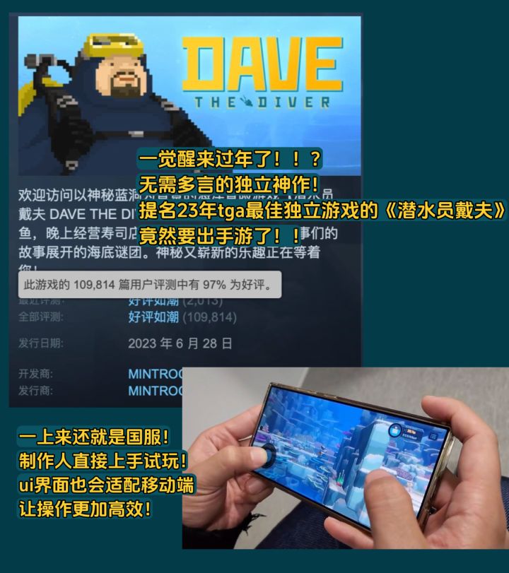 获得23年最佳独立游戏提名,无数人心目中的独立神作《潜水员戴夫》竟然官宣即将上线手游版了!!!