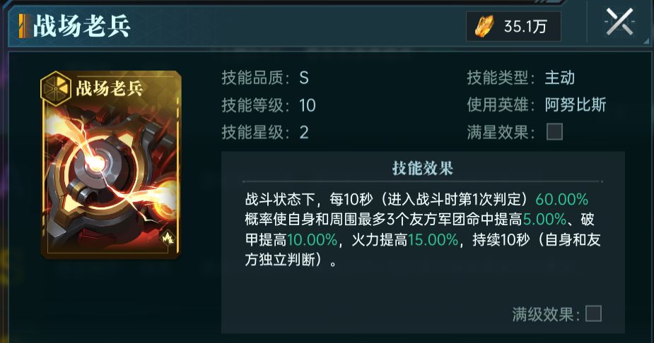 战场老兵:增强队伍整体属性,进一步提升前排的输出能力。