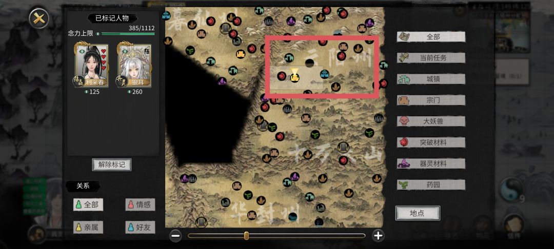 黄色图标是我们的宗门,这里可以看到,我们的宗门已经从华封州迁移到云陌州了