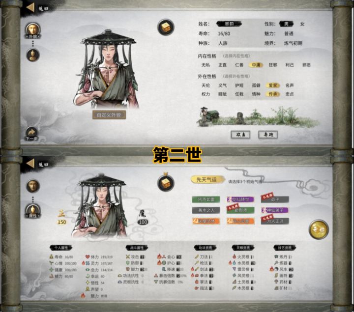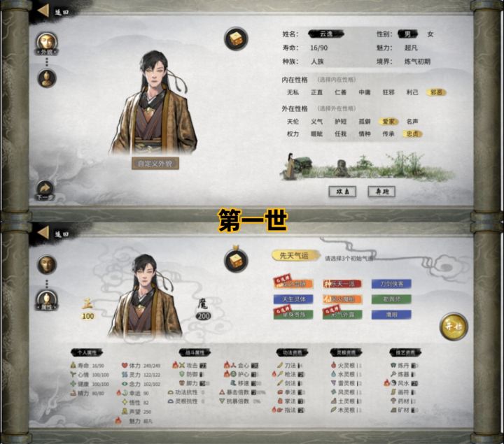 ps.角色长相、天命、数值、神器由随机数字生成器决定,姓名由豆包根据长相决定。