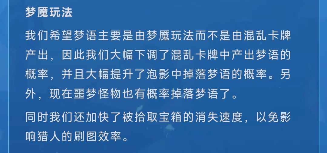 梦魇玩法平衡调整,具体算加强还是削弱得上线看