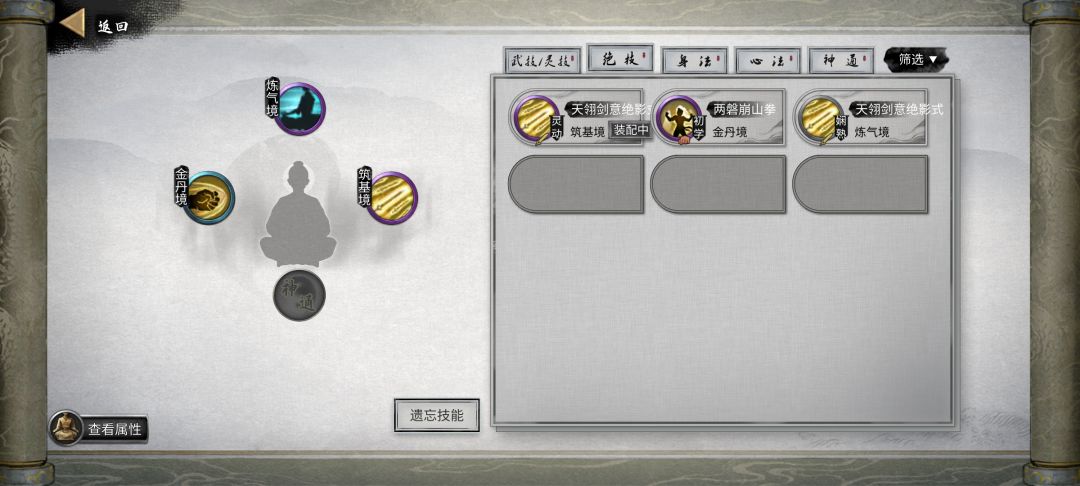 ,练气最多可以学两个结晶的技能,学武技和绝技就行了,绝技建议学绝影剑,武技就学拳法吧,有护盾,不容易死