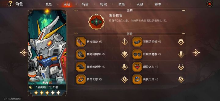 盾鳄负责当T和加盾,顺便吸血斩赛季词条减一下劈砍抗性,加盾和战斗吼还能最多给队友加4能量。工具人带不灭寒风,每回合回复40%+的血,坦度可以。