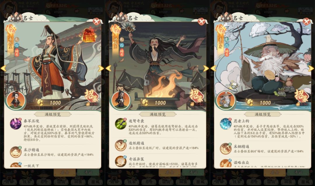 卓越:神农、伯牙子期、李斯三者分别具有增加伤害、增伤、提升攻击的效果,所有蛮族入侵都是较为理想的替补位。