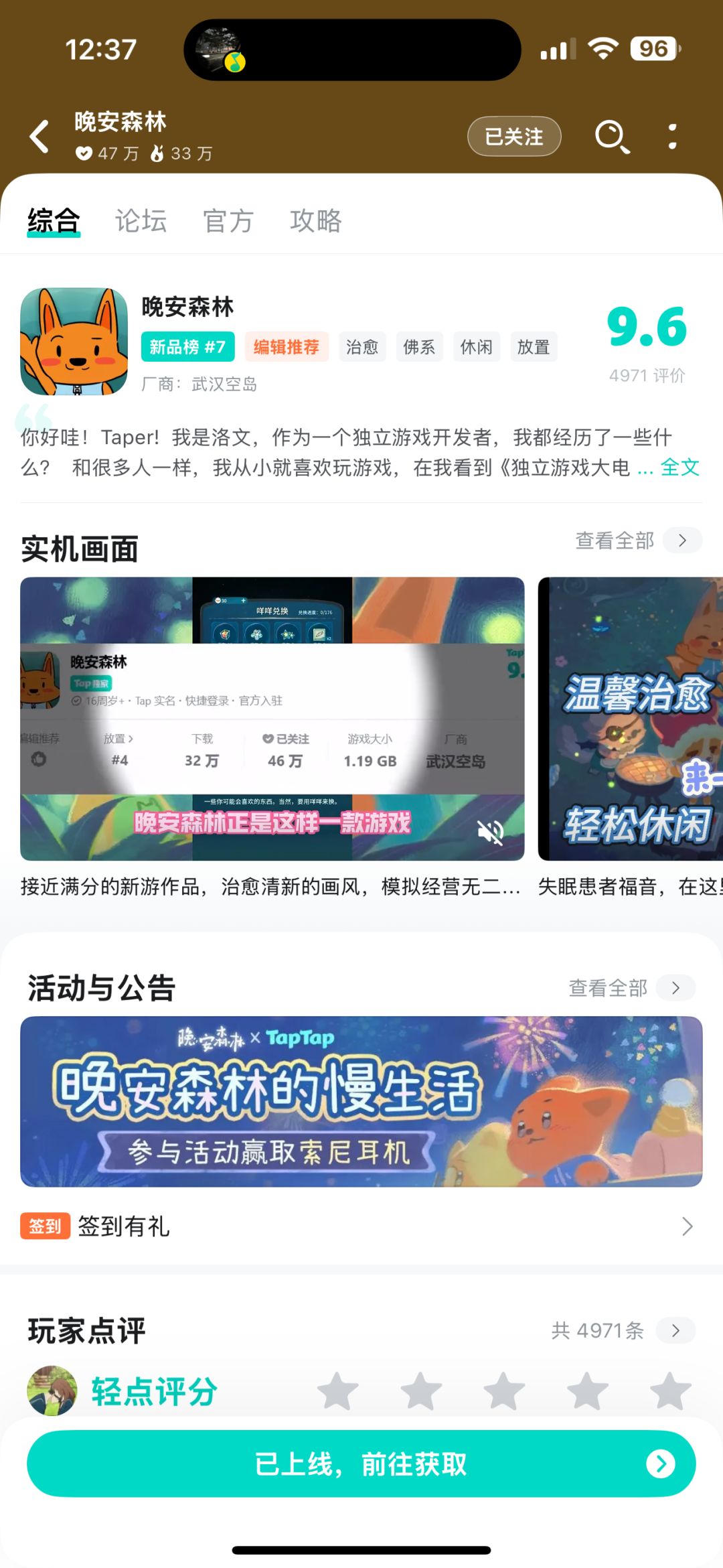 每次上tap第一件事就是看晚安森林有没有上线,都快形成肌肉记忆了