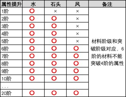 材料阶级和突破阶级对应,6阶的材料不能突破4阶的属性