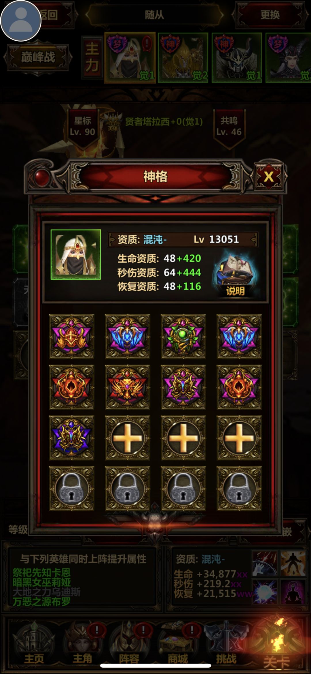 第一。随从共鸣,只计算主力,辅助以及魂契随从中最高的十个。这个完全看刷图进度。没什么可说的。(符文来源-挂机,推图,探索,哥布林。前期缺符文可以尝试探索以及扫荡哥布林。)