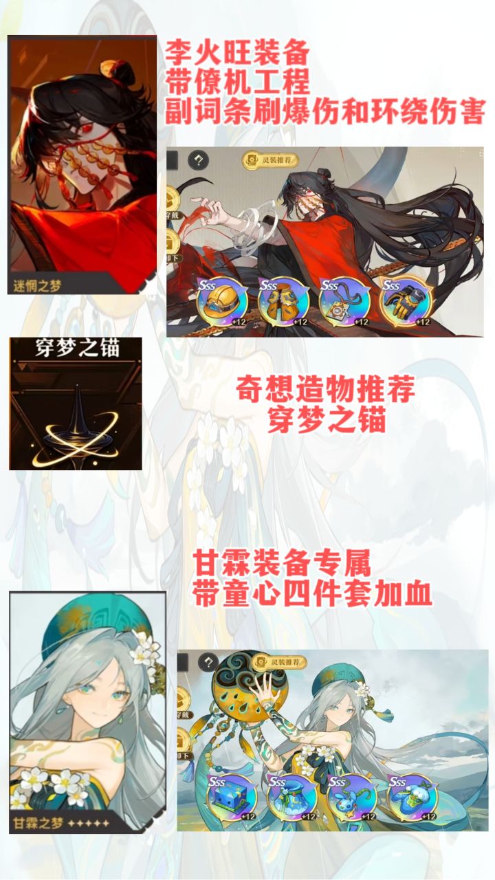 甘霖装备带童心四件套加血即可。