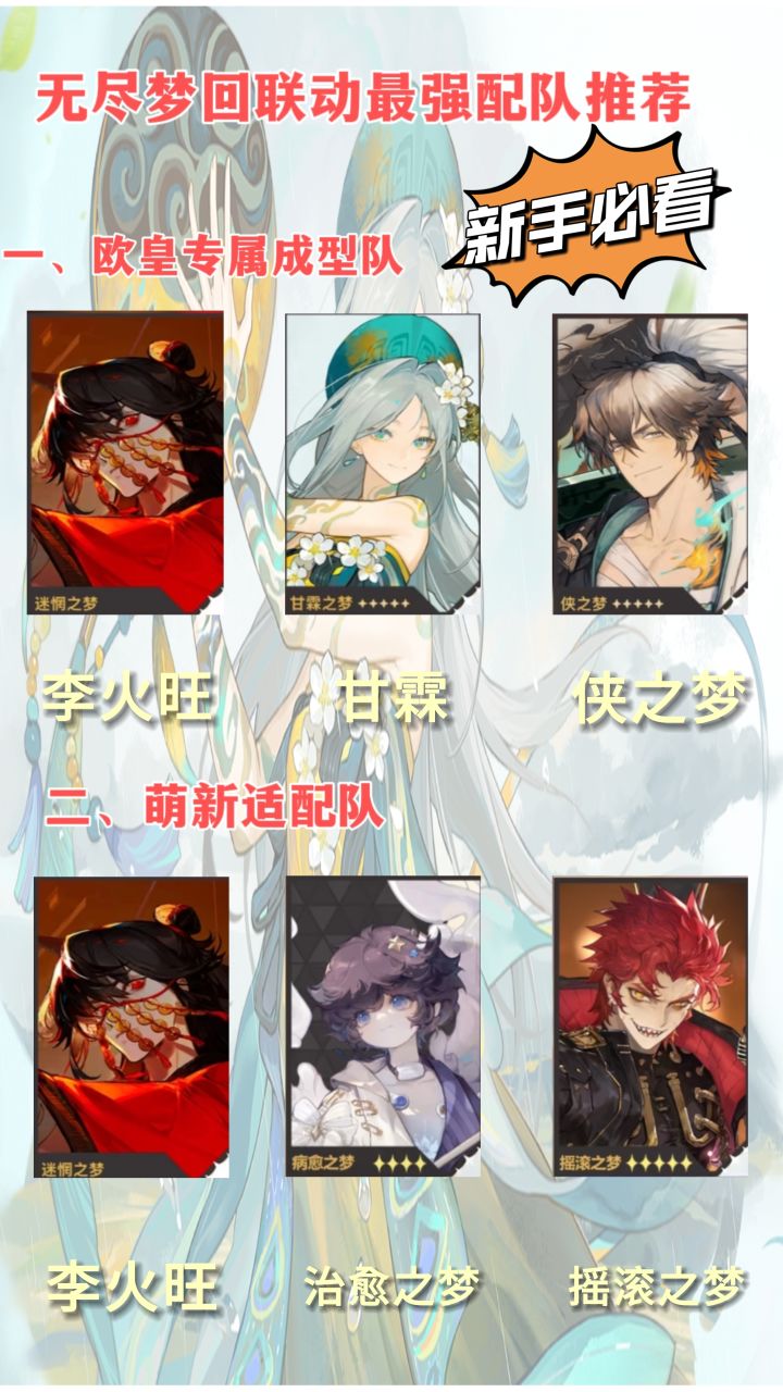 推荐没有抽到甘霖的玩家,这套阵容成型快而且伤害也不俗。