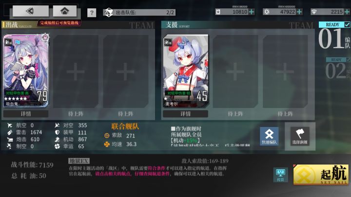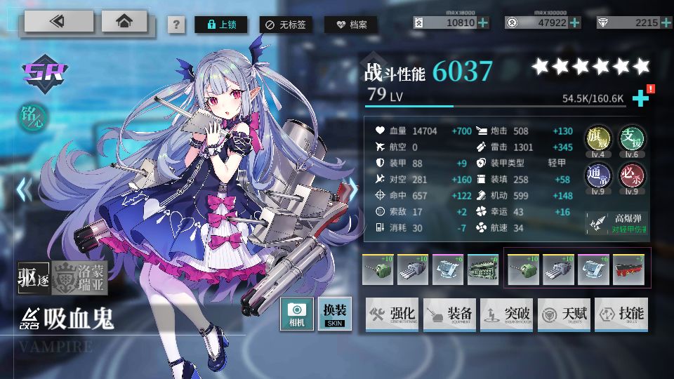 参考练度:吸血鬼开始打捞时是74级7槽,这个练度补机动以后配合暴击阵非常稳。