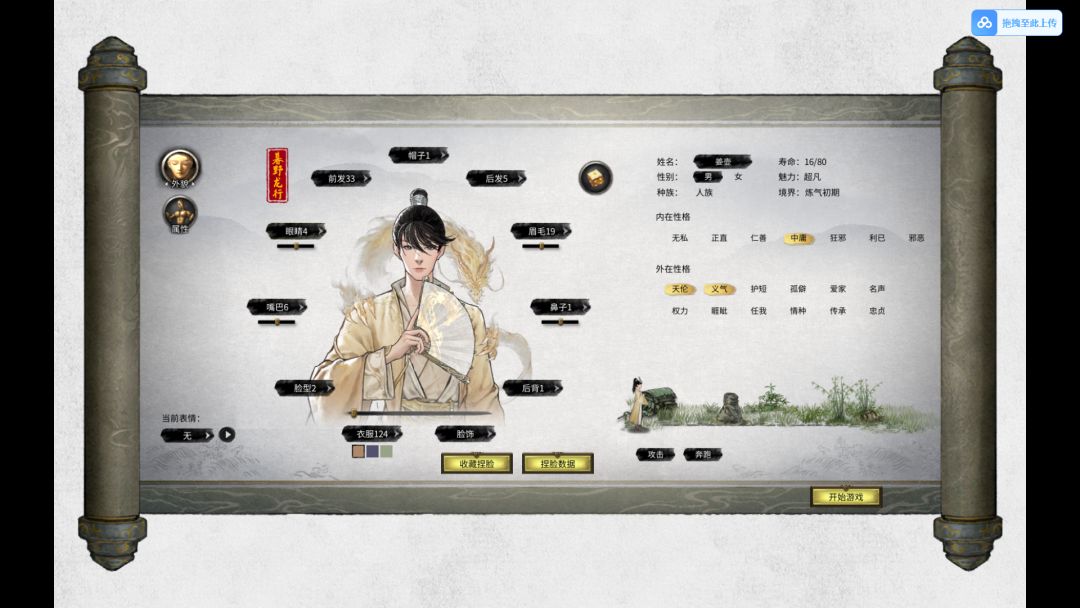 在先天气运上要选择倾国倾城,因为魅力有好感加成,如果你选择了噬魂剑那么记得刷英雄传承保存正魔平衡。