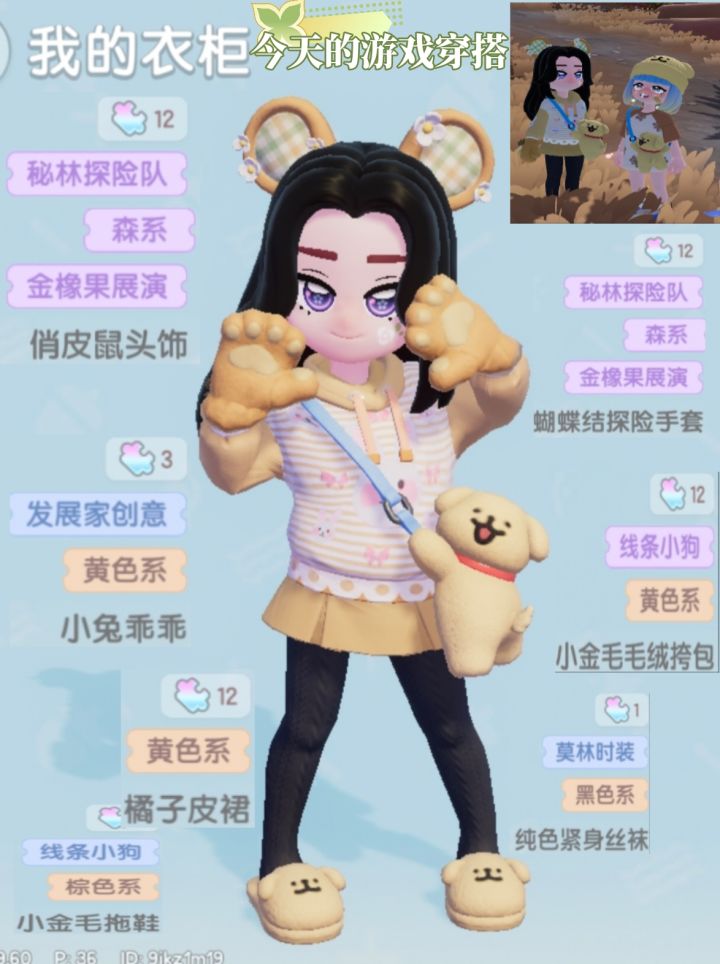 穿了很久的白色线条小狗套装,今天另外搭配了一套发现颜色适配度挺高,所有的装扮就截图帖上去了,如果有喜欢的可以试一试,宠物套装真的百搭,怎么穿都俏皮可爱,而且可以搭的有很多