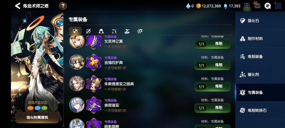 ps:考验殿堂的交易所换到的属性技能是随机的,炼金术之塔材料拉满必定为自选技能的max属性强化,但只能炼制一次,慎重选择