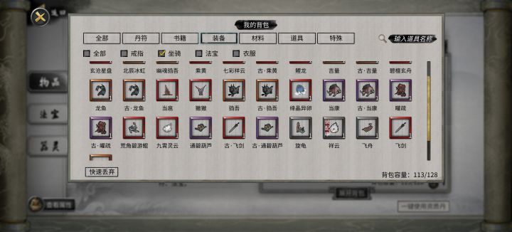 飞剑(六色)、矔疏、当康、驺吾、龙鱼、吉量、乘黄、北辰冰虹,坊市购买