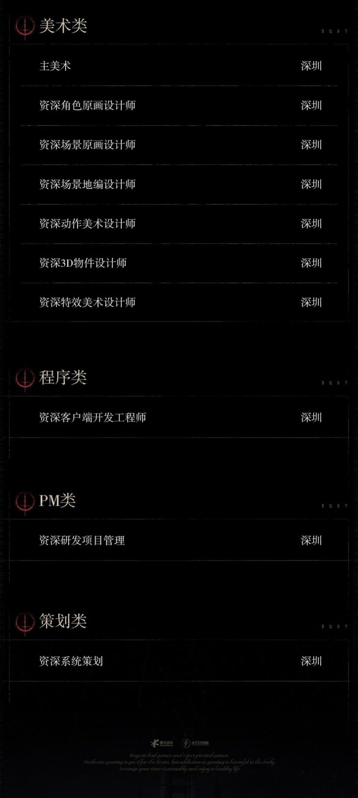 一并爆料还有一张疑似官方HR发布的招聘图,包含美术、程序、PM、策划等多个核心岗位及工作地点。