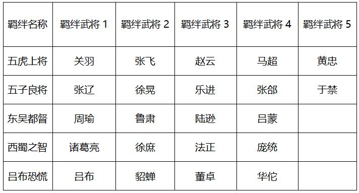 武将开荒首选推荐【五虎将】、【五子良将】、【大都督】等组成羁绊来进行开荒,这样可以拿到阵营羁绊、兵种羁绊、历史名将羁绊,能有效获得多种属性加成和技能连携效果!