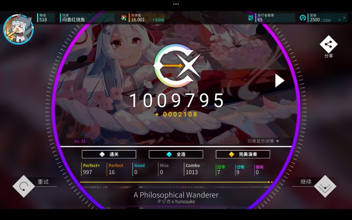 ps:可以多p点12,但是我从原本的15.95推到16.00只p了六首12就到了,如果有能力可以把13推一下(不用全连),把12+推到接近全连基本上都可以加分【想要从15到16只能推12往上,如果rt比较低的话建议先推11把rt提升到15往上再推12性价比比较高】