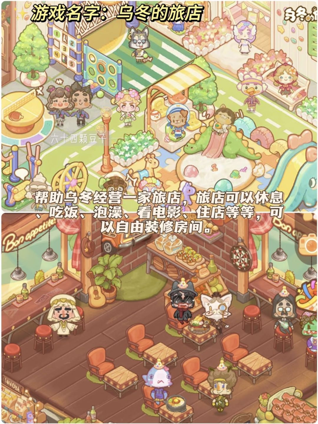 简介:帮助乌冬经营一家旅店,旅店可以休息、吃饭、泡澡、看电影、住店等等,可以自由装修房间。