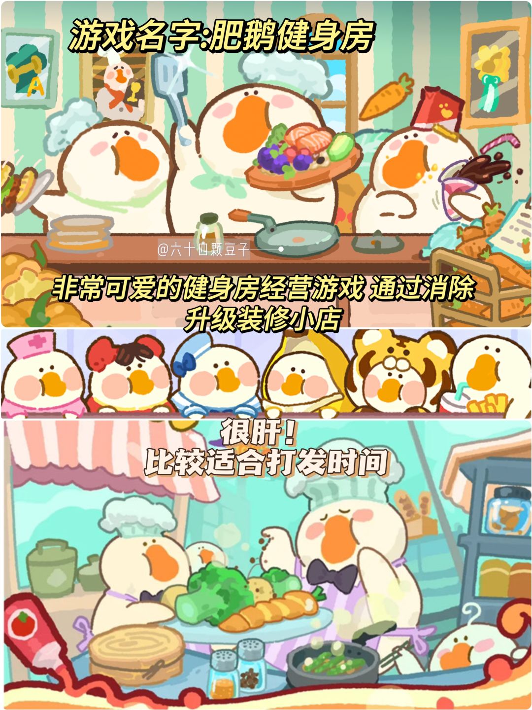 简介:非常可爱的健身房经营游戏,里面的肥鹅非常可爱,需要通过消除升级装修小店,肝!很肝!比较适合打发时间。