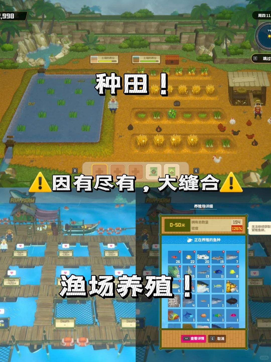 5️⃣游戏玩法丰富新鲜感强,任务量大剧情管饱,你可以在《潜水员戴夫》中捕鱼、开店、打海怪、捡装备、搞装修;然后你会发现你还可以鱼场养殖、菜地种菜、探索古文明、打卡拍照海底奇观;玩着玩着你甚至可以刷朋友圈、赛海马、玩音游、进海底村庄化身传统RPG的主角开始接委托。
