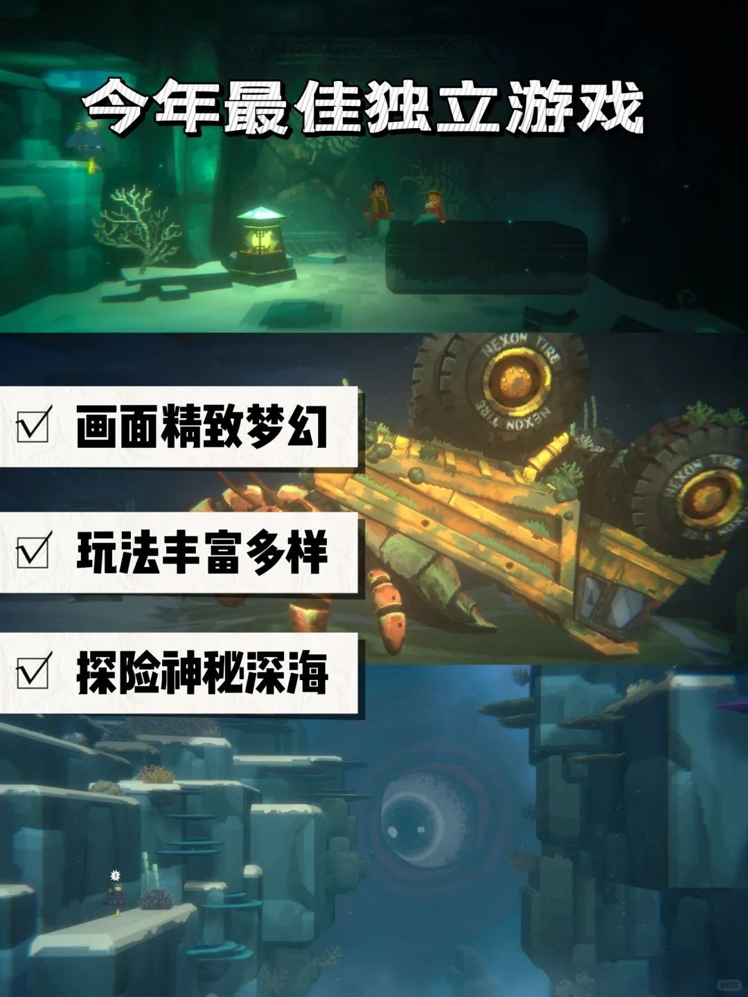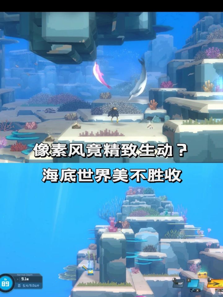 3️⃣每一次入海是探险也是观光,与海豚共舞,看巨鲸游过,见深海里的生物在黑暗中散发神秘的幽光,一切都是如此美不胜收,满足了我们对海底的想象与向往。一个像素游戏的世界竟如此细腻,不得不让人感到惊叹。