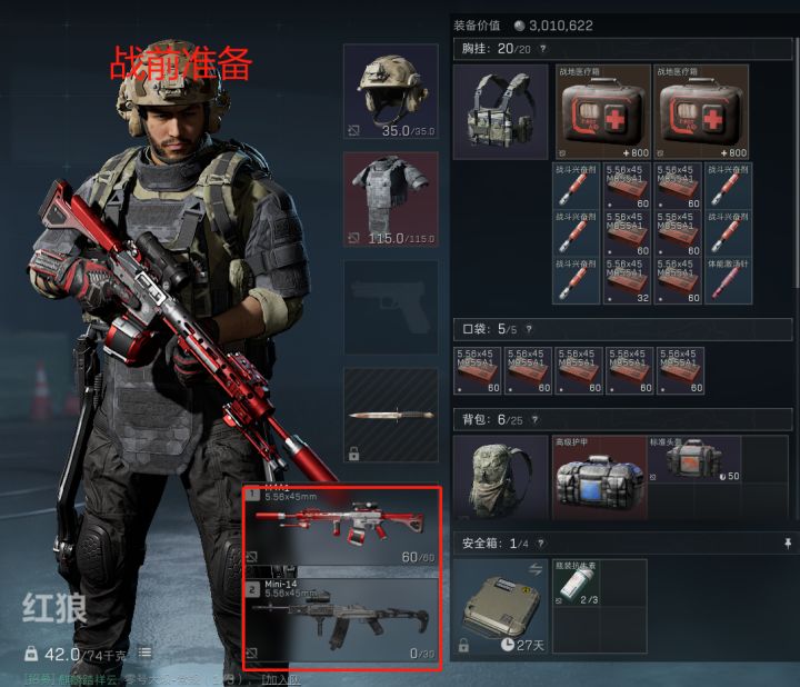 我建议是两把枪都带通用子弹,我这里带的是一把m4,另一把是mini-14,这把连狙便宜,在子弹少的情况下连狙的子弹比较耐用。