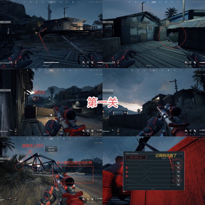 4.除了直升机和路上的车辆。其次注意就是沿路各点狙击兵或者火箭兵,其他杂兵其实都可以不用,怎么浪费子弹管。