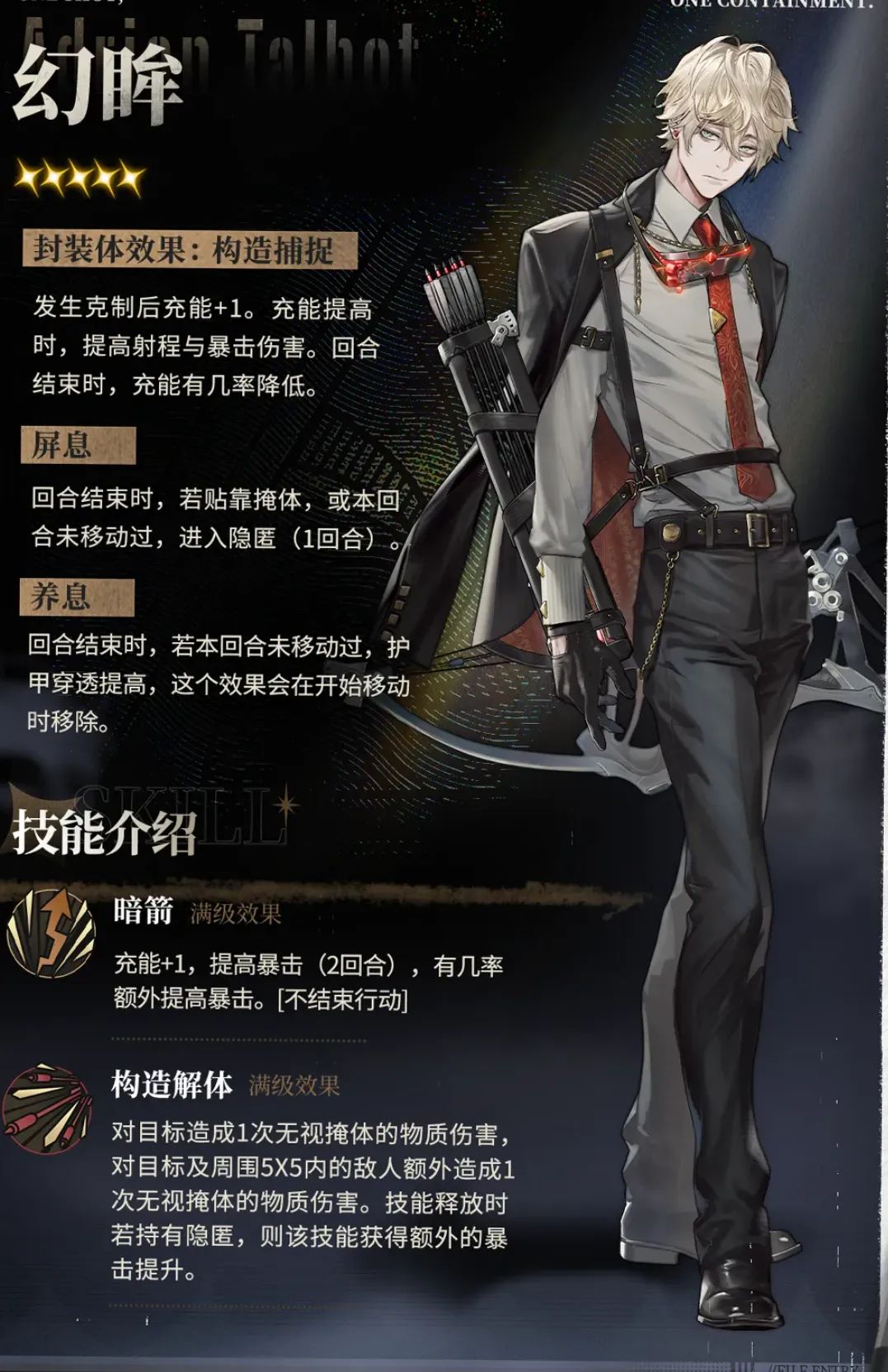 从技能机制上分析,幻眸主打的是“非移动状态下的暴击输出,同时还能外加一个“隐匿”的效果与群体输出的2技能。所以从这个逻辑来讲,配合到幻眸狙击手的职业,倒是和之前的乌拉尼娅的设计逻辑有些类似,两位同样都具备充能机制,同时也是一个充能辅助的1技能+群体输出的2技能设计,外加乌拉尼娅和幻眸也都为主打暴击伤害的狙击手,所以搞不好未来他们俩在部分关卡中还能有组队配合的几率。不过在蓝色的构造属性上,目前也已经有了6星狙击银枪,因此按照官方之前的设计标准,幻眸很有可能是无法超越银枪输出的,不过话又说回来......银枪因为时至今日也没有UP过,所以保有率相对有限,因此搞不好官方设计幻眸也就是想在这个空档期内给部分玩家补一个更容易升拓变等级的5星构造狙击手。
