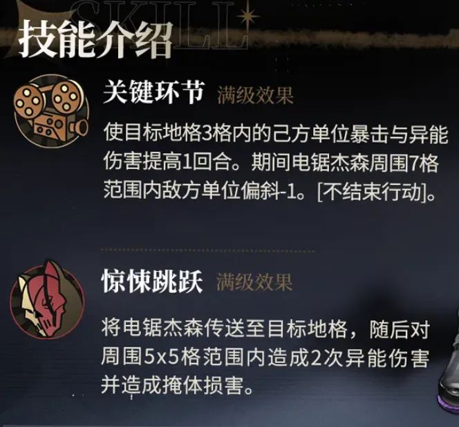 接着维奥拉还具备暴击辅助和异能增伤辅助两项能力,当然这个杰森7格范围内的地方偏斜-1就有点看实机的战斗环境了,综合价值不算很高。而最后杰森还能被传送且造成范围伤害,此外还能破坏掩体,所以......说到这大家有没有这种感觉,那便是维奥拉的综合能力还是挺丰富的,且还是一位难得的半攻半辅角色,不过好像就是感觉不怎么强呢?这里维一也简单说下其中的原因: