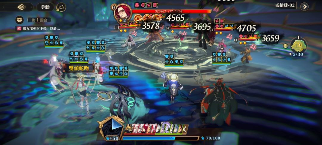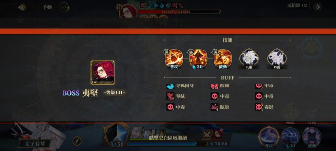 新版相柳实装后灵气技【斗折蛇行】成为了主要的叠毒手段,到相柳回合时建议优先使用灵气技。