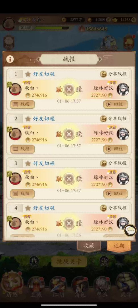 这套是我平时自己一直用的套路,需求的话是4条四系攻击,放弃聚气,让自己后出手,然后核心输出在456号武学位置
