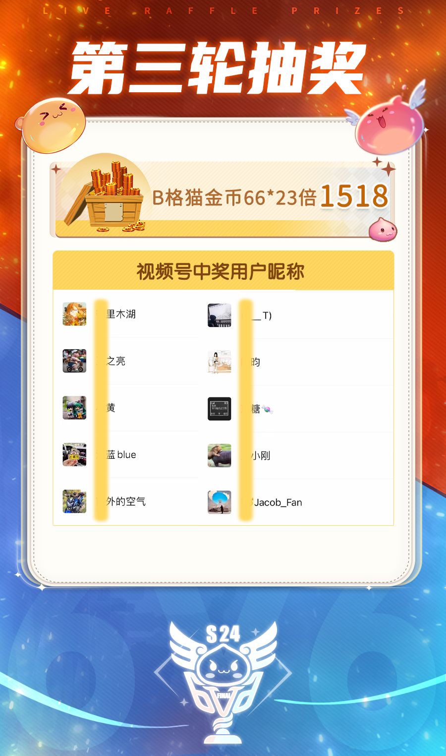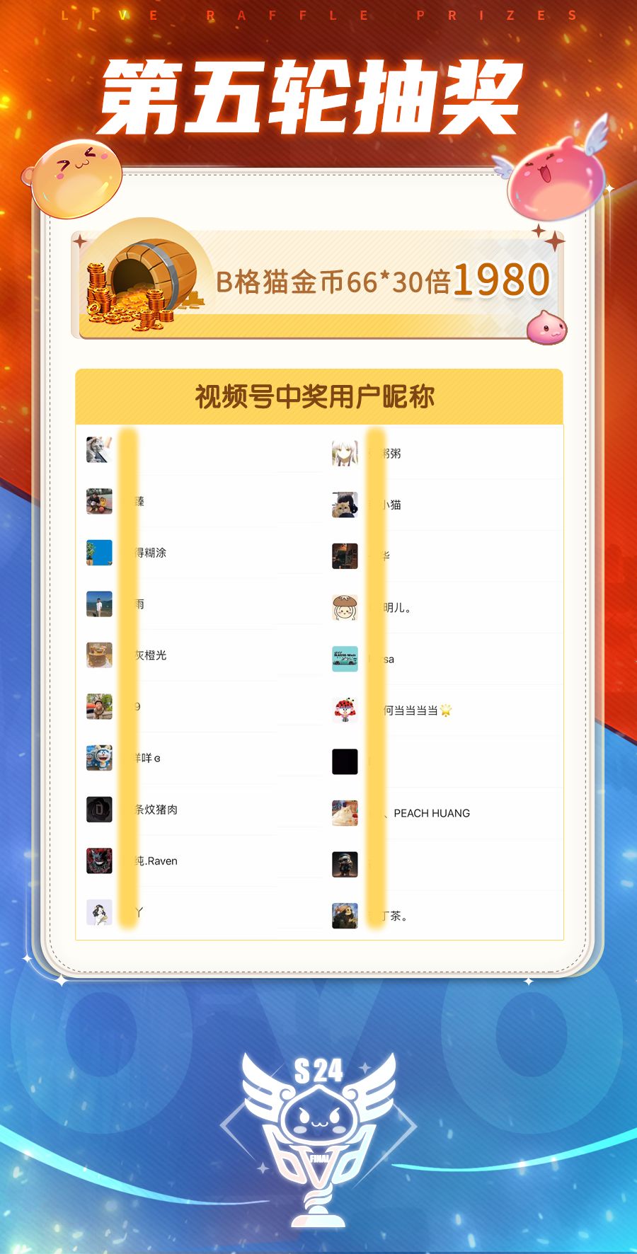 热血S24赛季,幸运与你同行!感谢各位冒险者的热情参与,本次直播抽奖的幸运名单已经出炉啦!