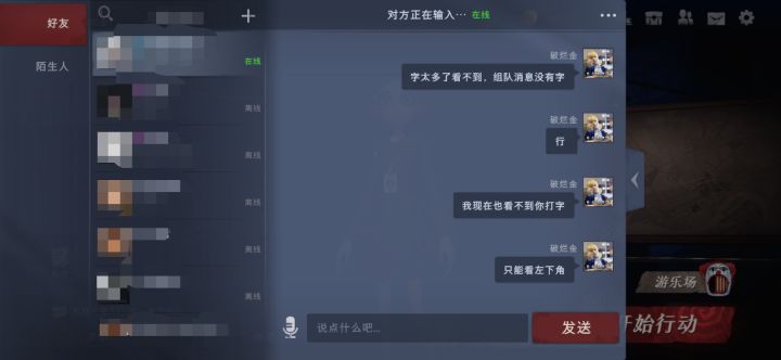 游戏外有时看不到队友消息,只能在右下角看到,组队消息也是(可能是重新连接后的BUG)有时候能看到有时候不显示