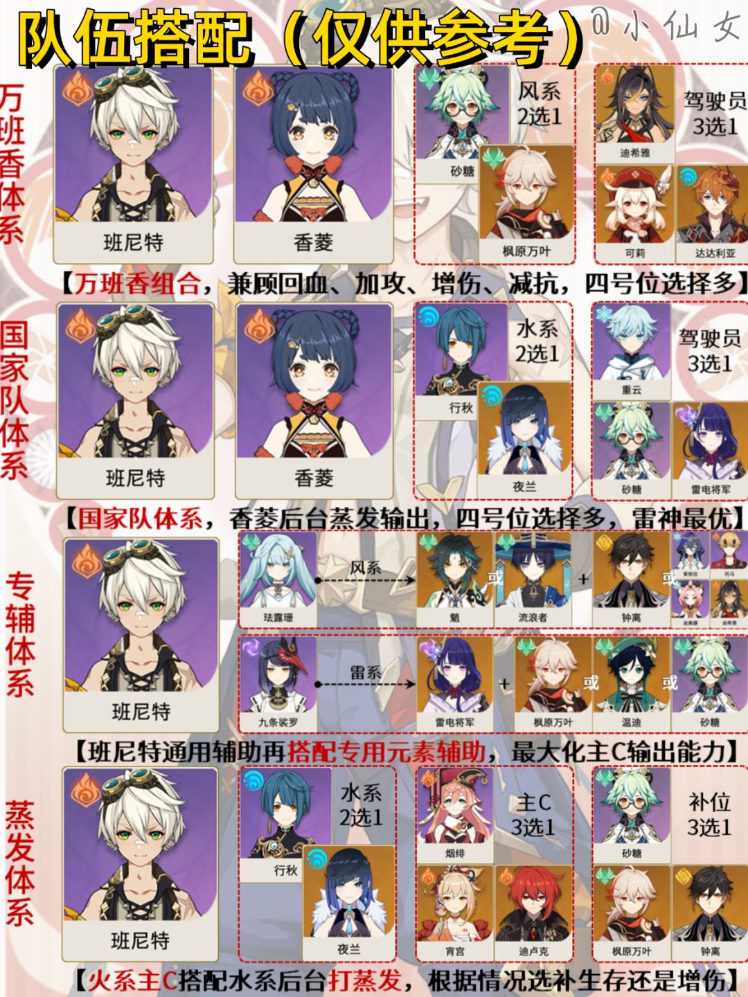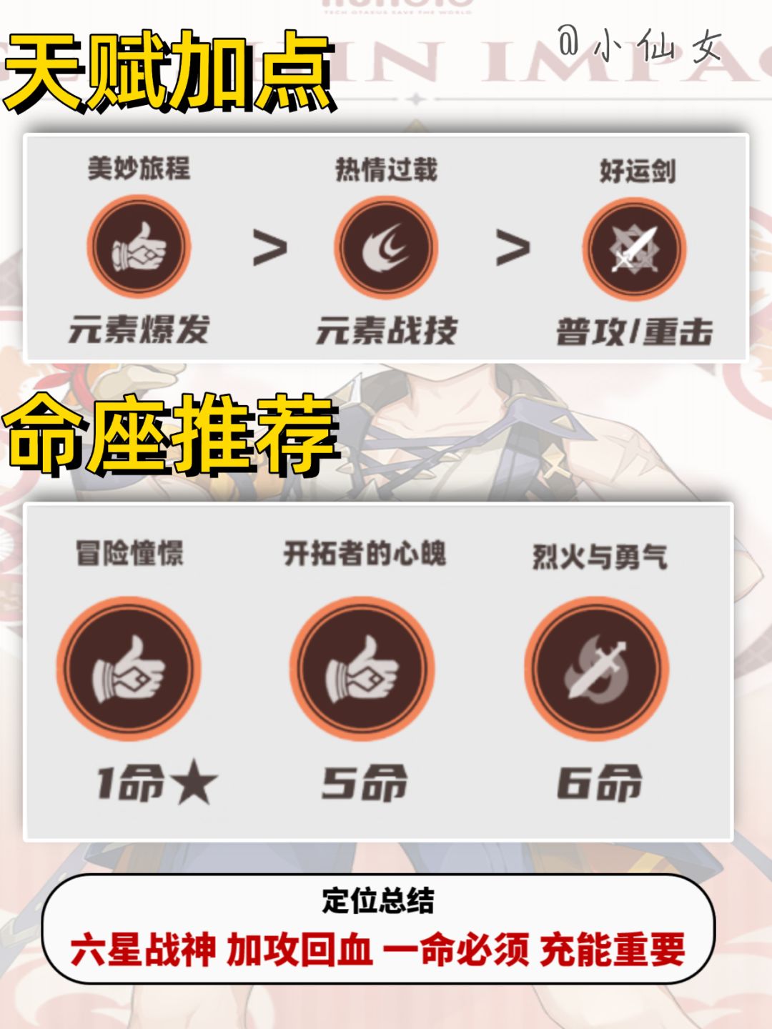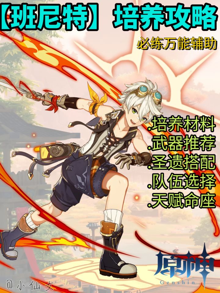 班尼特是一位集加攻辅助与回血治疗能力于一身的复合型角色,在有限的队伍人数中能够提供等价两个位置的功能,从而极大的提升了各种队伍的强度,其元素爆发根据自身基础攻击力(角色自身+武器提供)为队友提供大量的额外攻击力,一命解除了加攻击的血量限制成为完全体,适合所有基于攻击力造成伤害的角色,也可作为站场主C或爆发副C培养,本篇攻略主要讲解常规的辅助定位,其他玩法不过多展开。