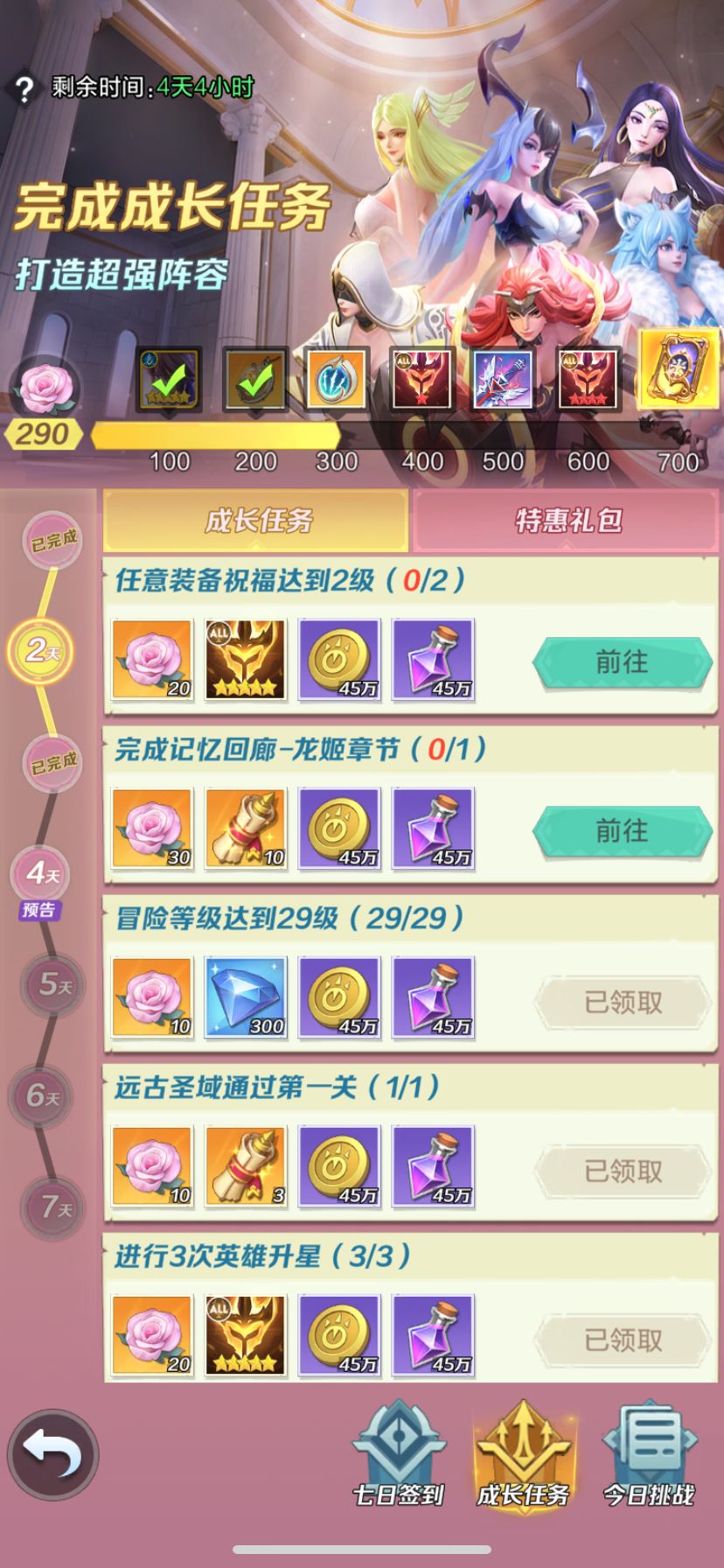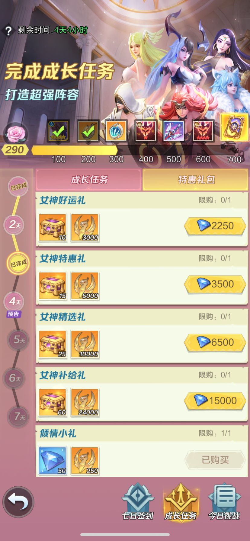3.成长任务变难,成长礼包围绕硬件设置,要英雄还是硬件,逼着选(不买的话试炼也难打)
