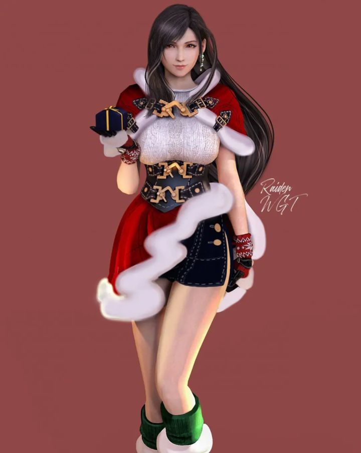 近日游戏博主RaidenWgt和drayqin在推特上,分享了自制的《最终幻想7》蒂法3D新年贺图。蒂法身穿圣诞装,尽显完美好身材。一起来欣赏下吧!