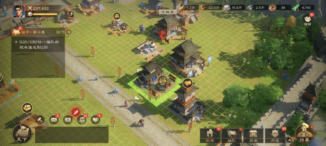 最为直观的就是自由行军的RTS式微操作设计和无极缩放功能,游戏中每个武将、士兵的寻路、攻击、扣血都独立计算,这一点算是目前市面上几乎没有的设定。游戏整体美术建模风格类似万国觉醒,偏欧美风。