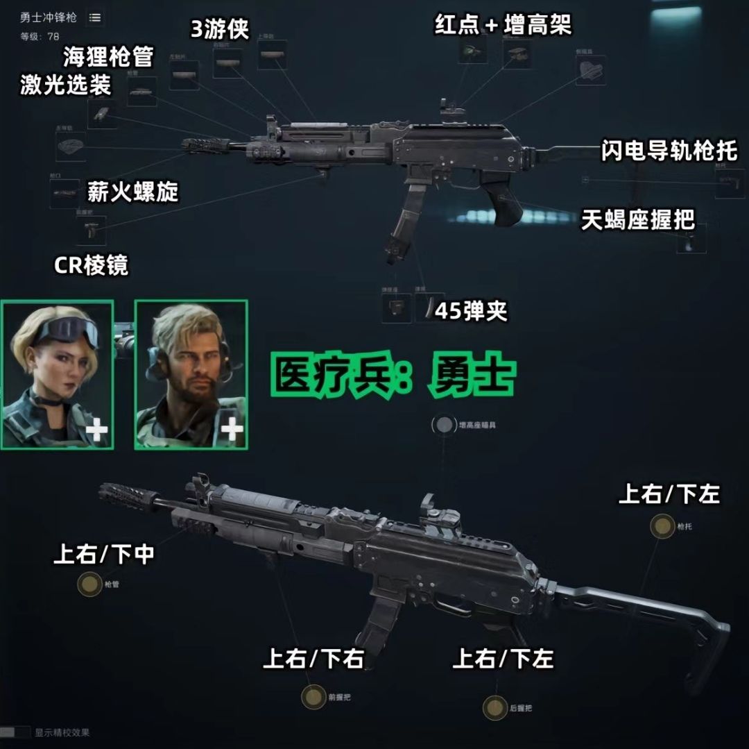 巴克什就SR3M,三四蛋都可以,洗甲快,可以打中远。MP7四蛋便宜,vector和p90感觉也行,不过感觉打远或者面对高一级的装备。大坝可以AK或者scar